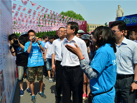 5月31日,大连理工大学第六届嘉年华盛装启幕,校园里人来人往,摩肩接踵,热闹非凡。物理与光电工程学院在伯川图书馆与毛主席像前进行展示,饱含物理文化气息的特色实验吸引了来自各个方面人群的兴趣关注。沿袭物理嘉年华“凝练物理语言,表达物理声音”以及物理学子为校庆65周年送祝福的主题,本次展示包括物理实验展示模块,物理实验体验模块,物理实验挑战模块,suncitygroup太阳新城风彩展示模块以及物理学子祝福墙五大模块。各模块各具特色,缤纷多彩,给伯川门前带来浓郁的物理文化气息。上午,校领导前来我院展示区进行参观,表示了对我院工作的肯定与赞扬。