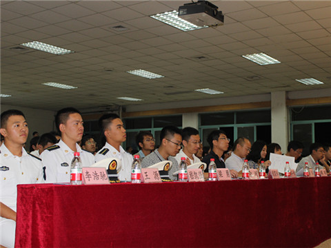比赛中,各班依次进行以“我和我的祖国”为主题的诗歌朗诵表演,由各到场嘉宾根据他们的团队表现,形式设计,诗稿创作以及男女领颂等分别进行打分。其间,三位教官用歌声为各参赛班级加油。从大家热情精彩的表演以及近日辛苦认真的训练中不难看出,无论是直接参与比赛的新生班集体还是指导大家的代班长们,都为这次打开大学团队文化生活大门的比赛进行了精心的准备,慷慨激昂的朗诵,别具一格的服装和舞台设计,以及他们曾留在校园各角落里的汗水和承诺,都成为这场比赛成功的证明。