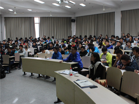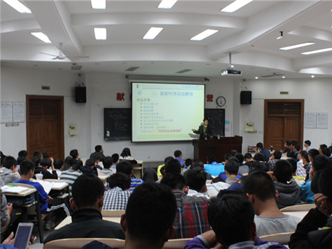 讲座在新生们热烈的掌声中开始。常亮老师首先就“大学生为何要入党”这一问题进行分析。他指出:时下大学生入党俨然成为一种“潮流”。接着,常亮老师从“青年学生的入党动机分析”、“生无信仰心、恒被他笑具”、“最新时事动态解读” 、“如何成就自己的信仰”以及“组织发展入党程序”五部分做了详解。他对当前大学生五种不同的入党动机进行了深入透彻的分析,讲解了信仰的重要性和两种科学解读“共产主义信仰”的方法。又结合“香港占中”、“马航MH 370”等最新时事,从我国当前的国情、不足与矛盾、周边形势、国际形势背景等方面对时事动态进行了解读。而在分析国际形势背景时,常亮老师指出:中美矛盾核心根源在于意识形态之争,本质则是经济利益之争。同时向新生们介绍了入党的流程以及申请入党人、入党积极分子、发展对象之间的区别与联系,并向新生们阐述了入党申请书的一些必要规范和细节。期间、他还为新生们讲述了自己在朝鲜时的见闻,幽默诙谐的语言使学生们多次爆发出热烈的掌声。